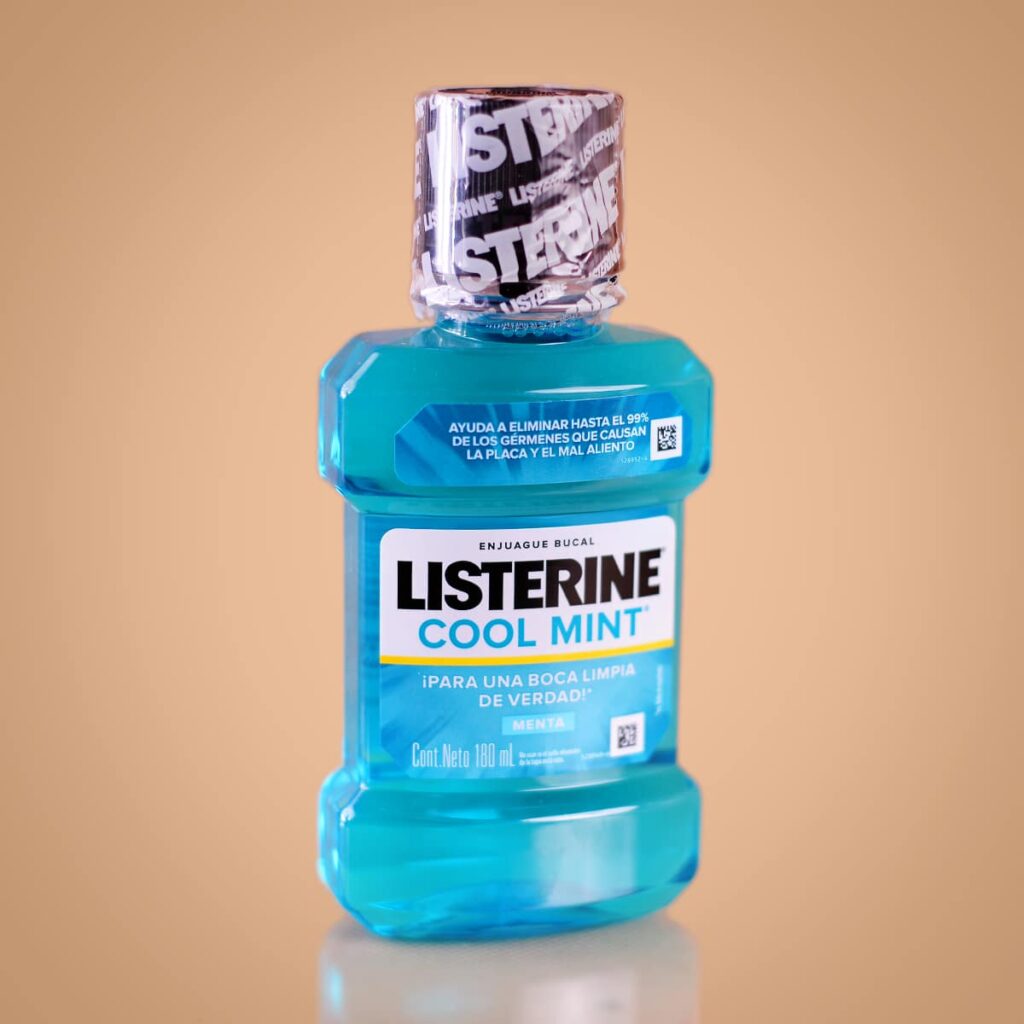 El Listerine de 180ml es un enjuague bucal eficaz que complementa la higiene oral diaria, ayudando a eliminar hasta el 99% de los gérmenes que causan placa y mal aliento.